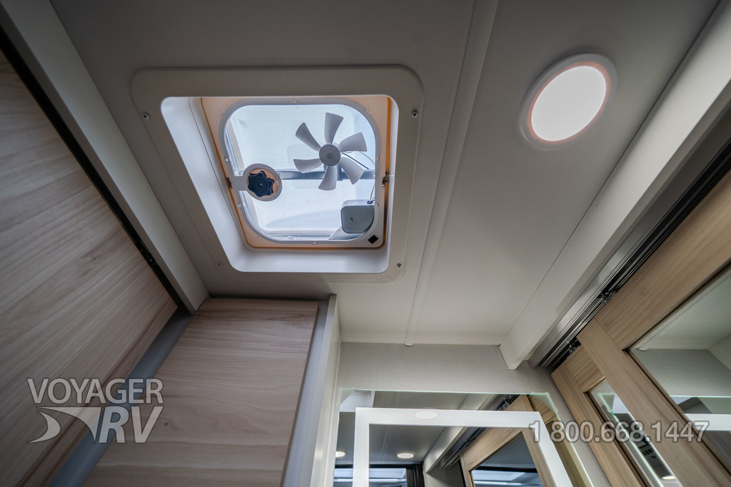 - Powered roof vent in living area with wall switch