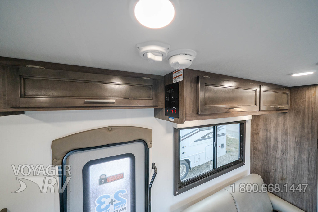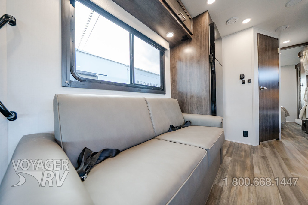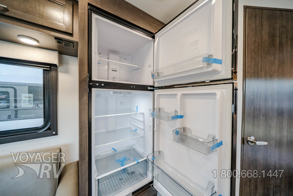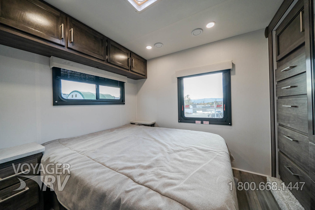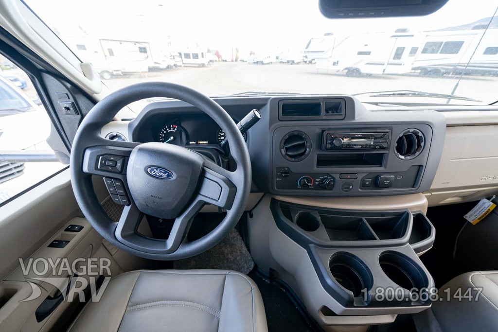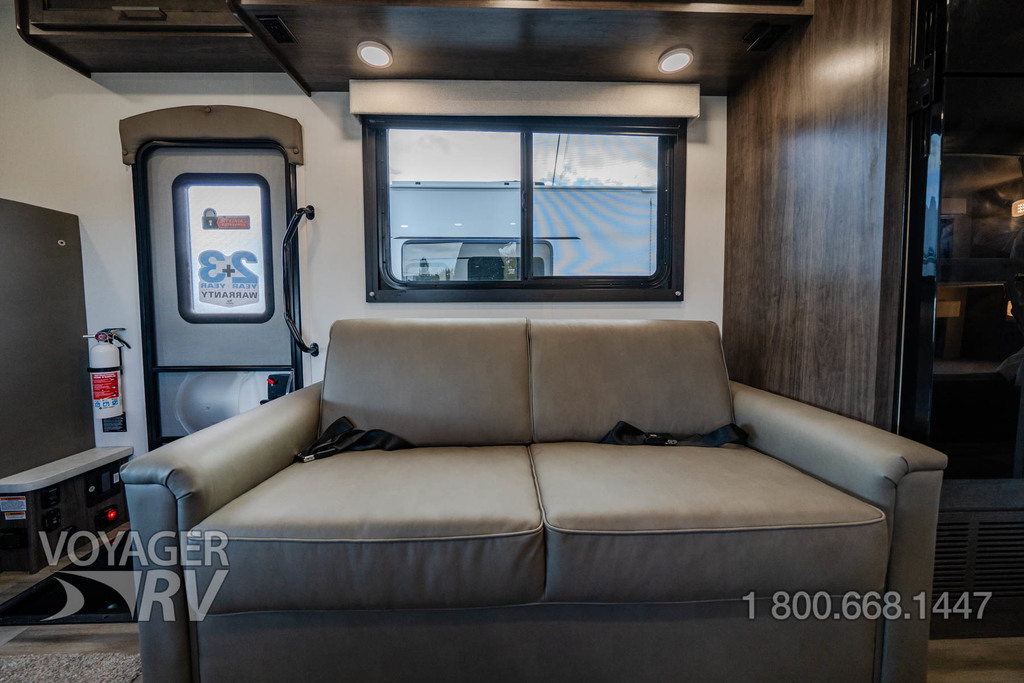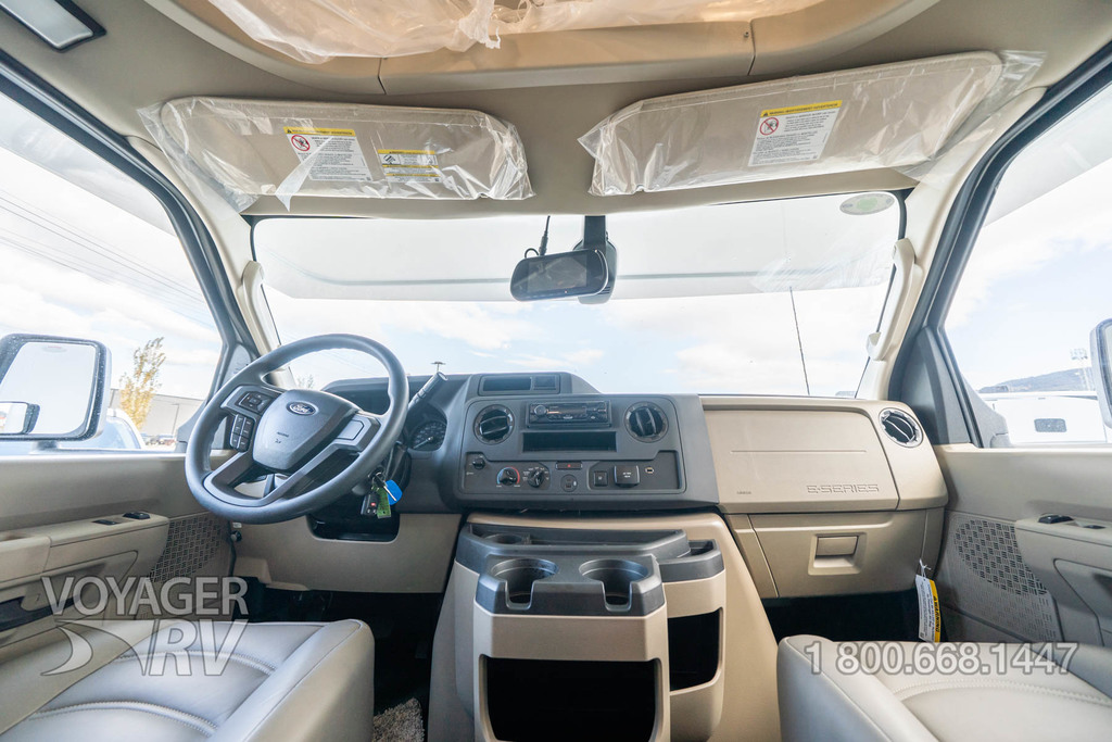 - Customer Value Package: One-piece, seamless, fiberglass front cap, Electric patio awning, Heated holding tanks (12V pads), Black holding tank sprayer, Backup camera, LED HD Smart TV.