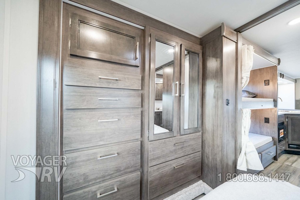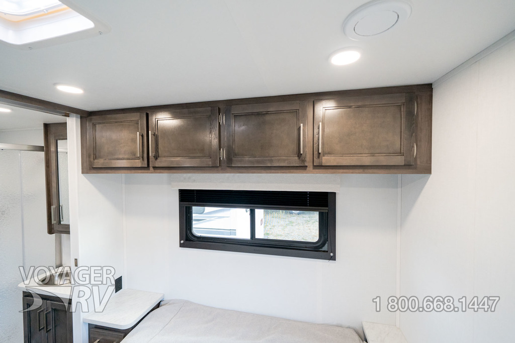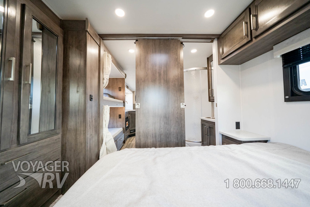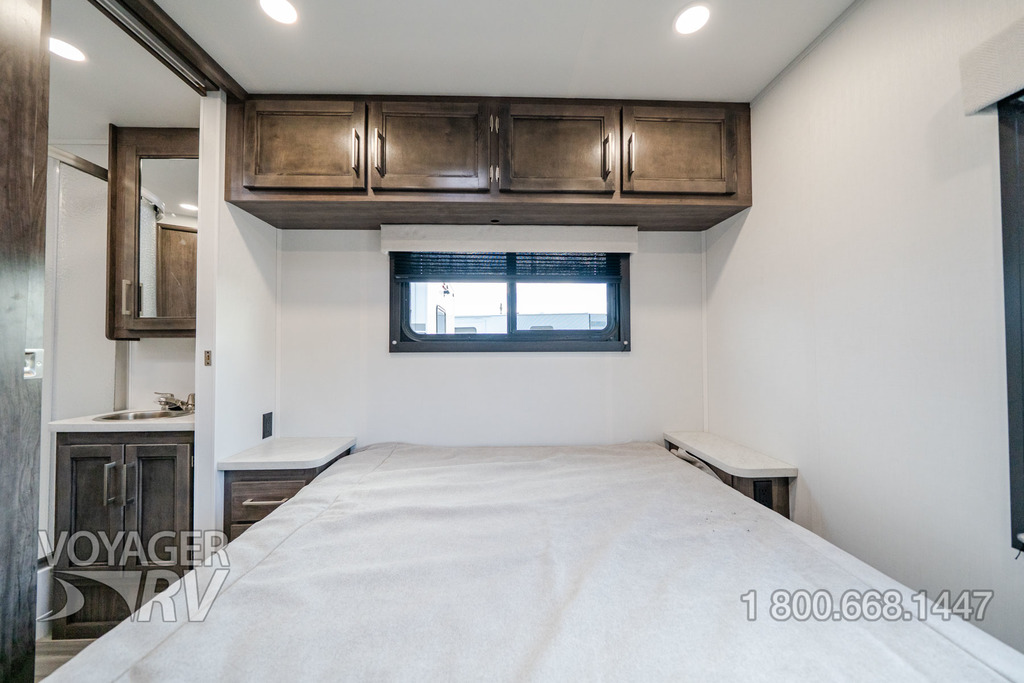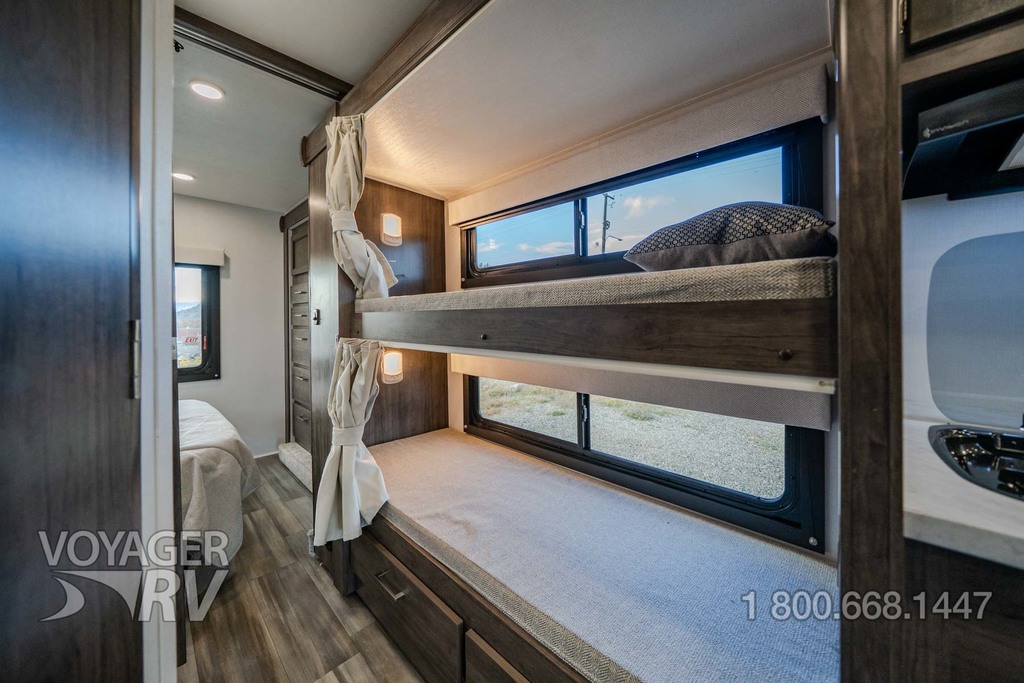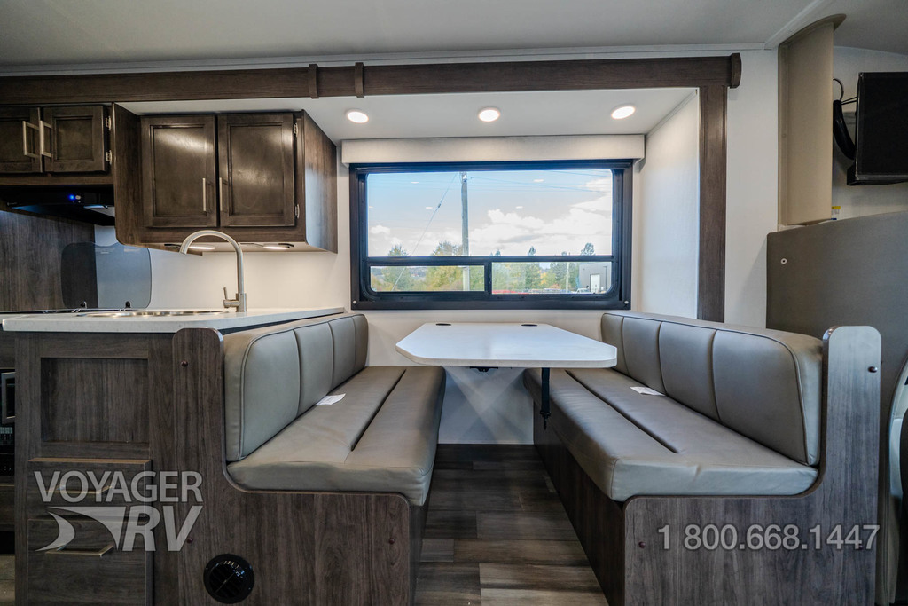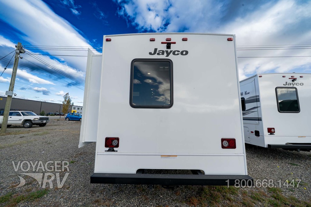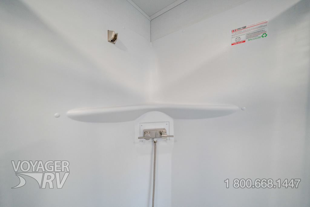 - Customer Value Package: One-piece, seamless, fiberglass front cap, Electric patio awning, Heated holding tanks (12V pads), Black holding tank sprayer, Backup camera, LED HD Smart TV.