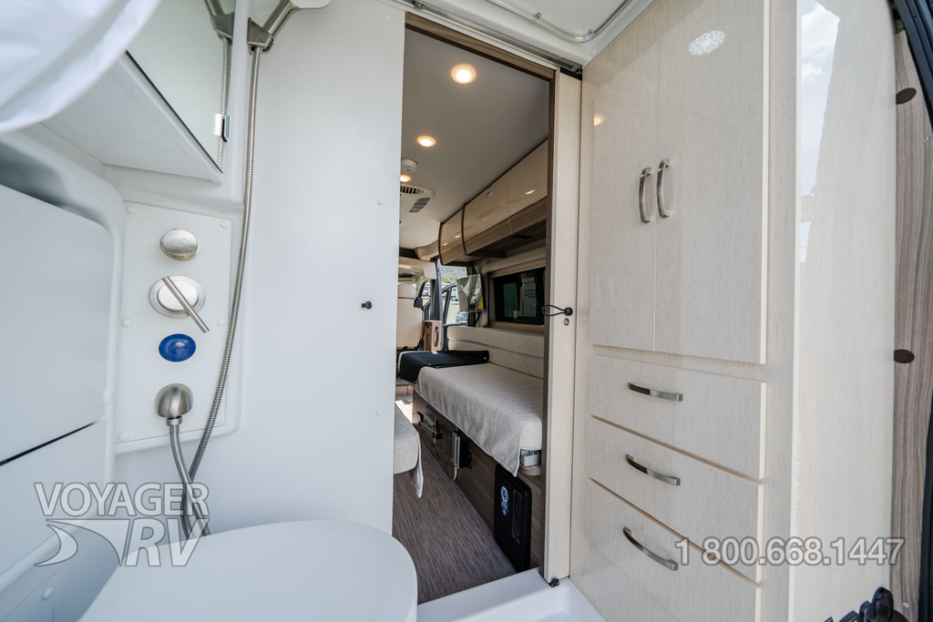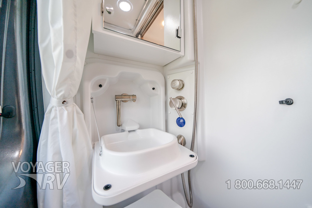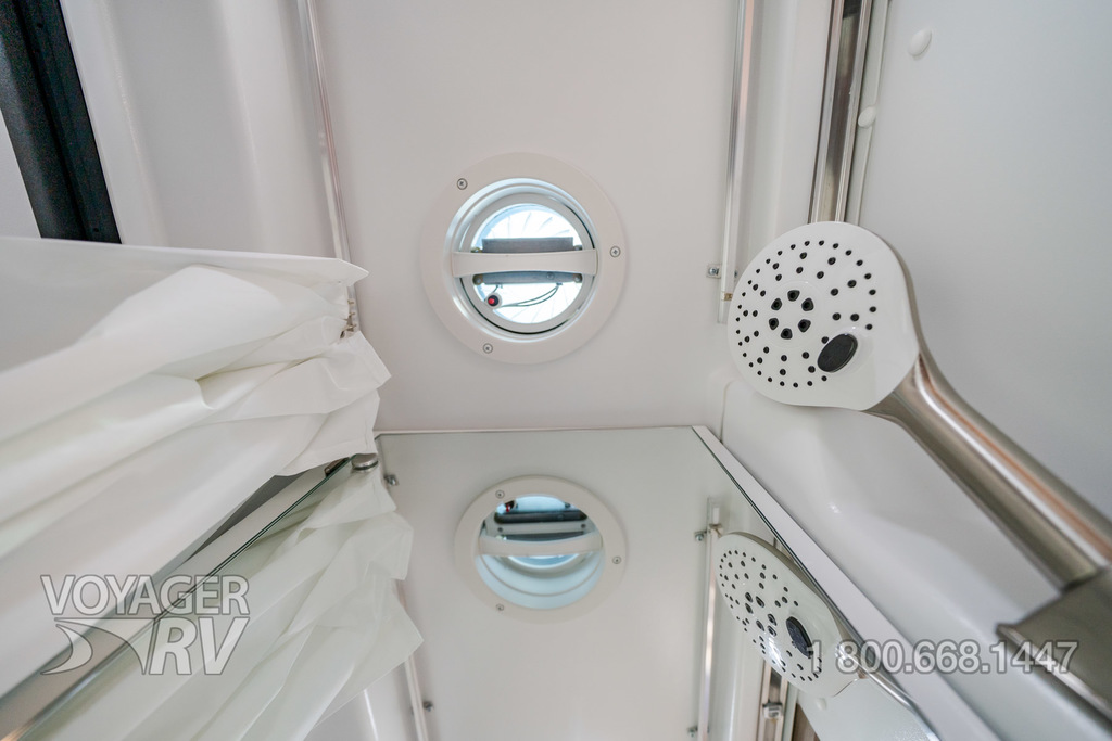 - Powered roof vent in bathroom (N/A with pop-top option)
