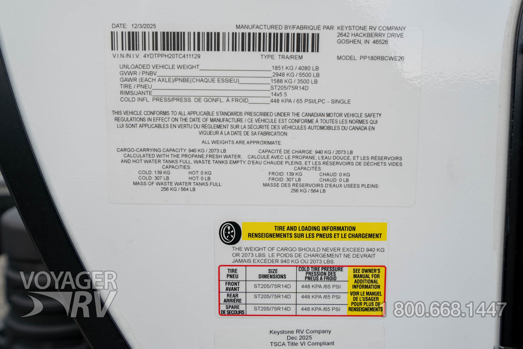 - Brand New 12V Deep Cycle RV Battery Installed (New & Used Towables)
