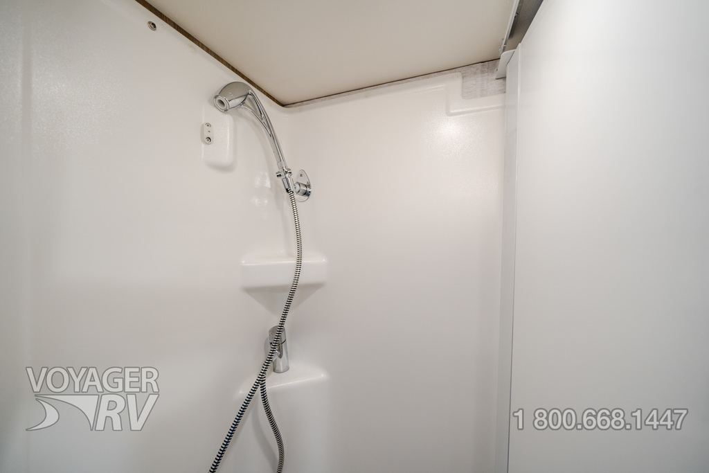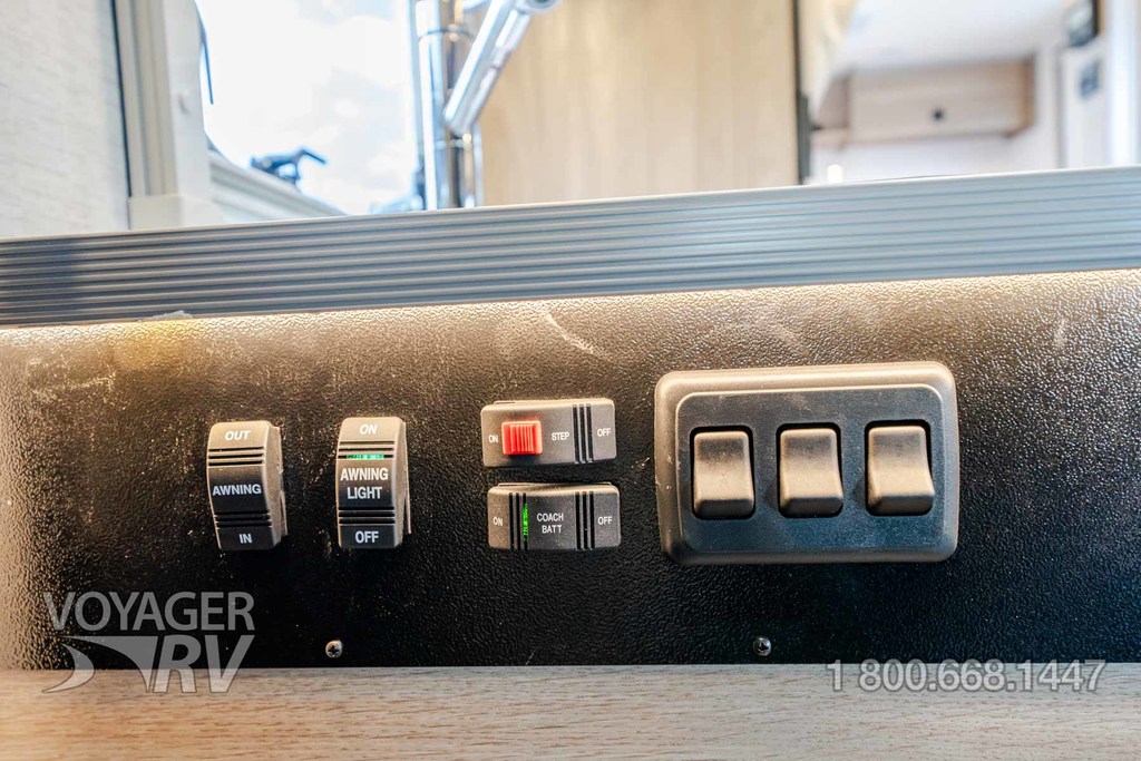 - Insulated water service center houses water center control panel, hooks, cable tv input, freshwater drain and portable satellite dish hook-up