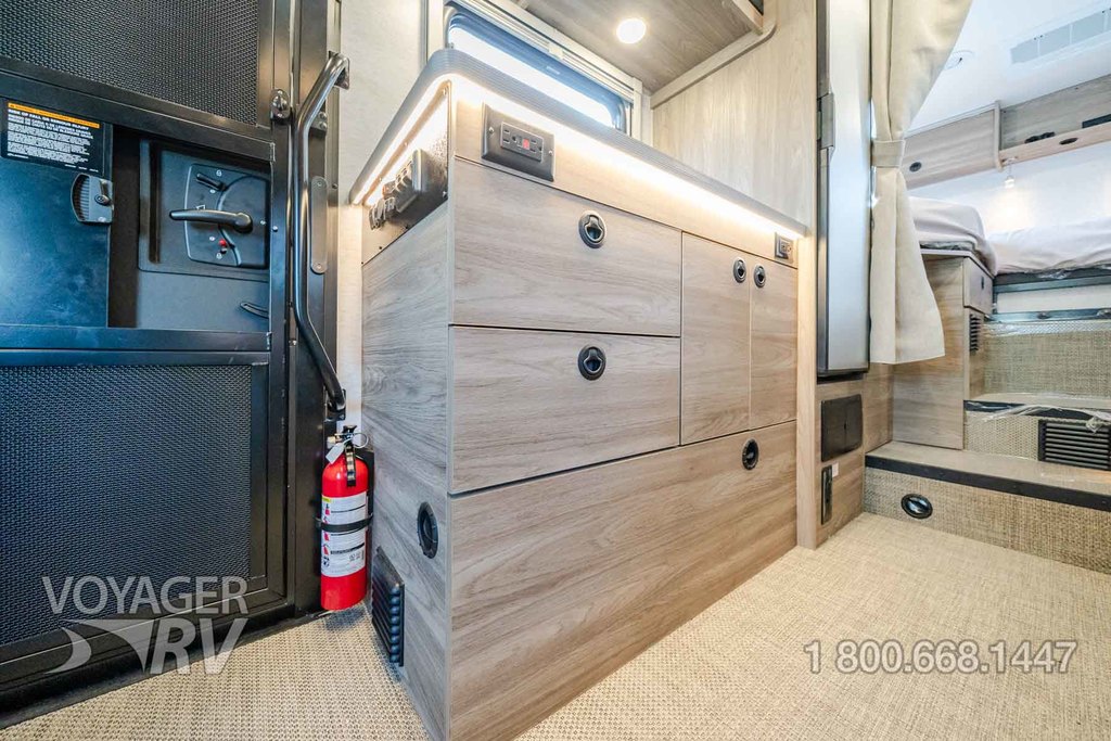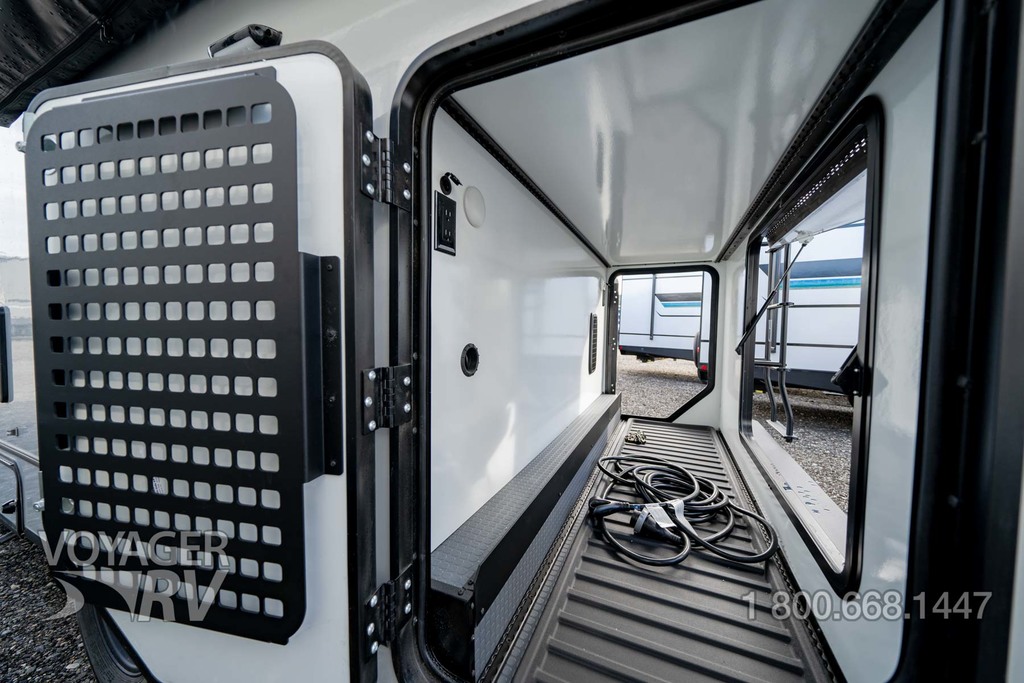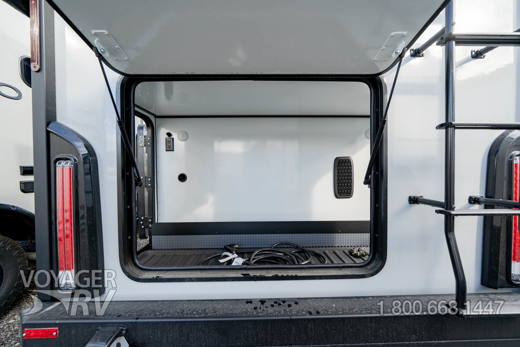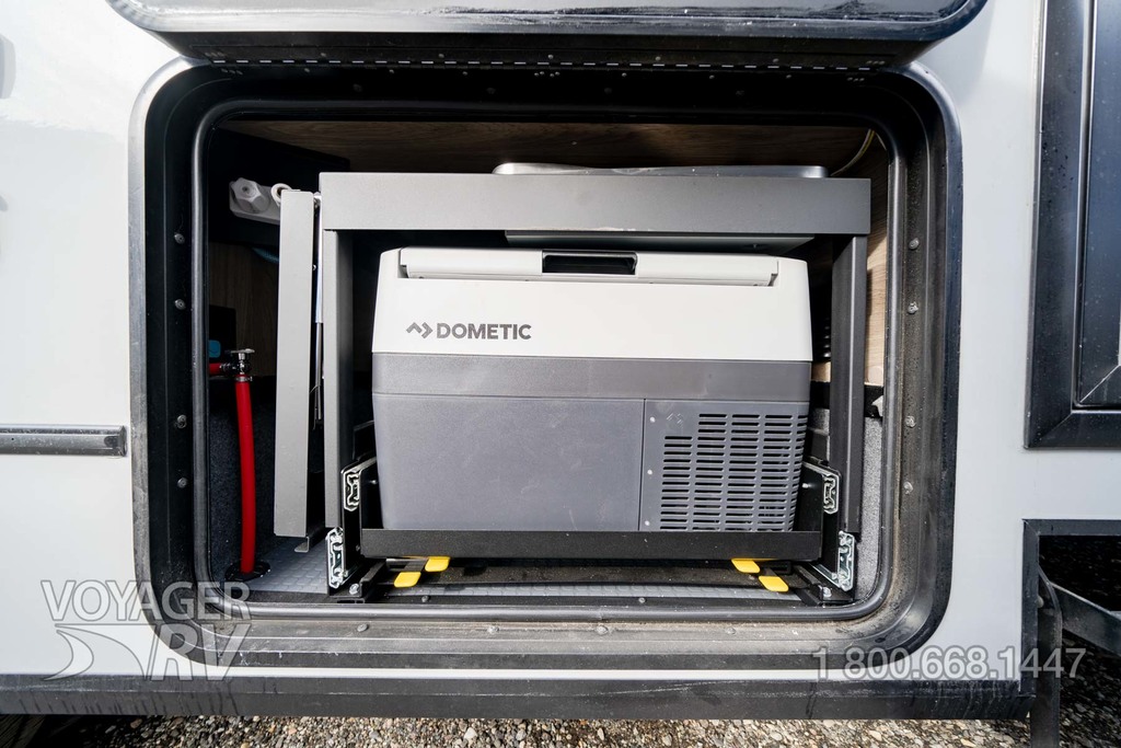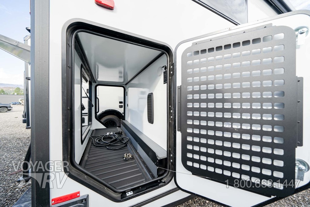 - Heated gear garage w/L-track cargo tie down system, 110V/12V charging ports and LED lighting