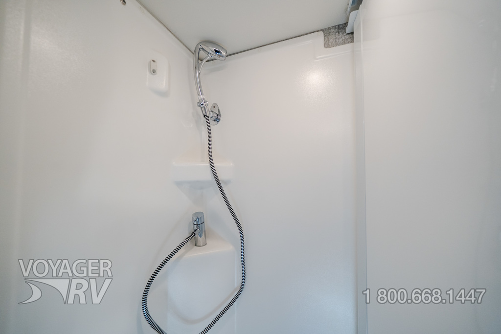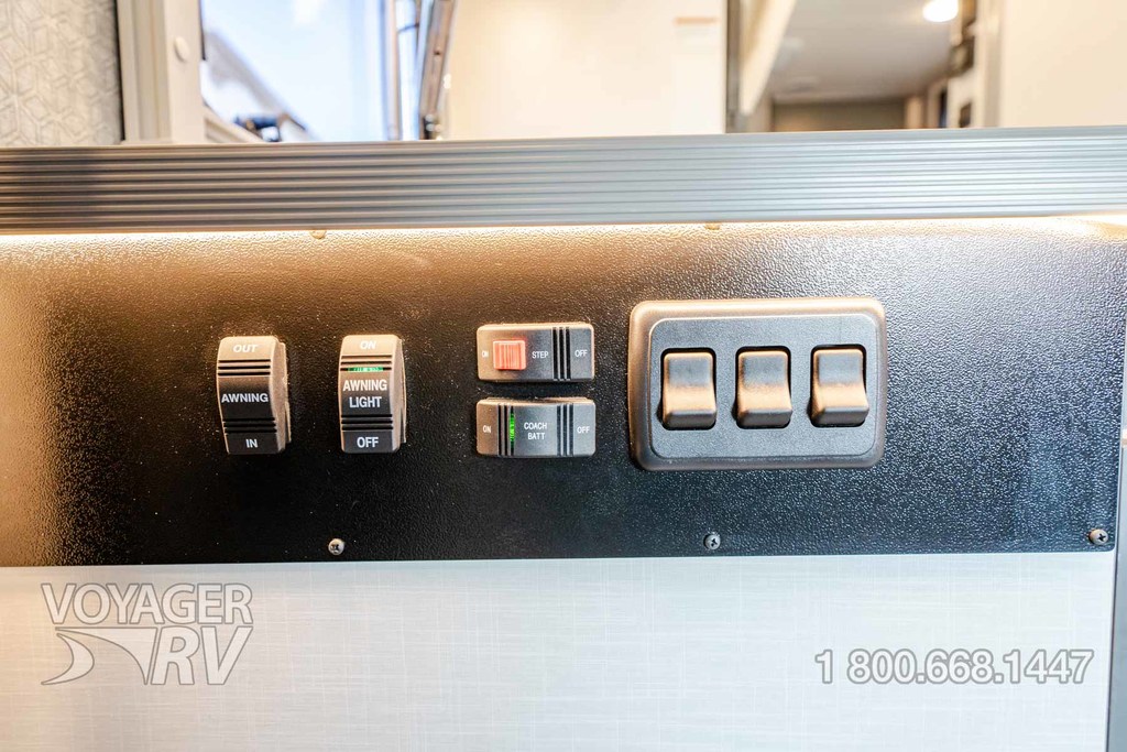 - Insulated water service center houses water center control panel, hooks, cable tv input, freshwater drain and portable satellite dish hook-up