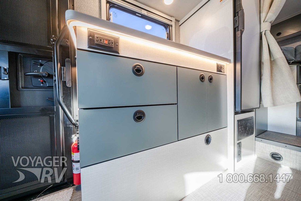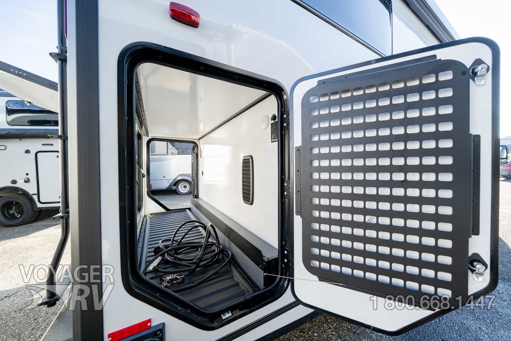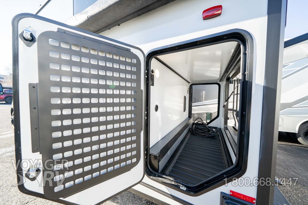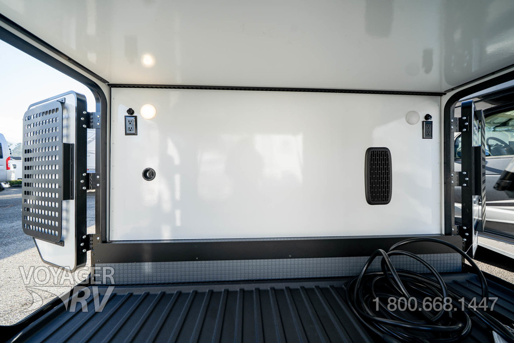 - Heated gear garage w/L-track cargo tie down system, 110V/12V charging ports and LED lighting