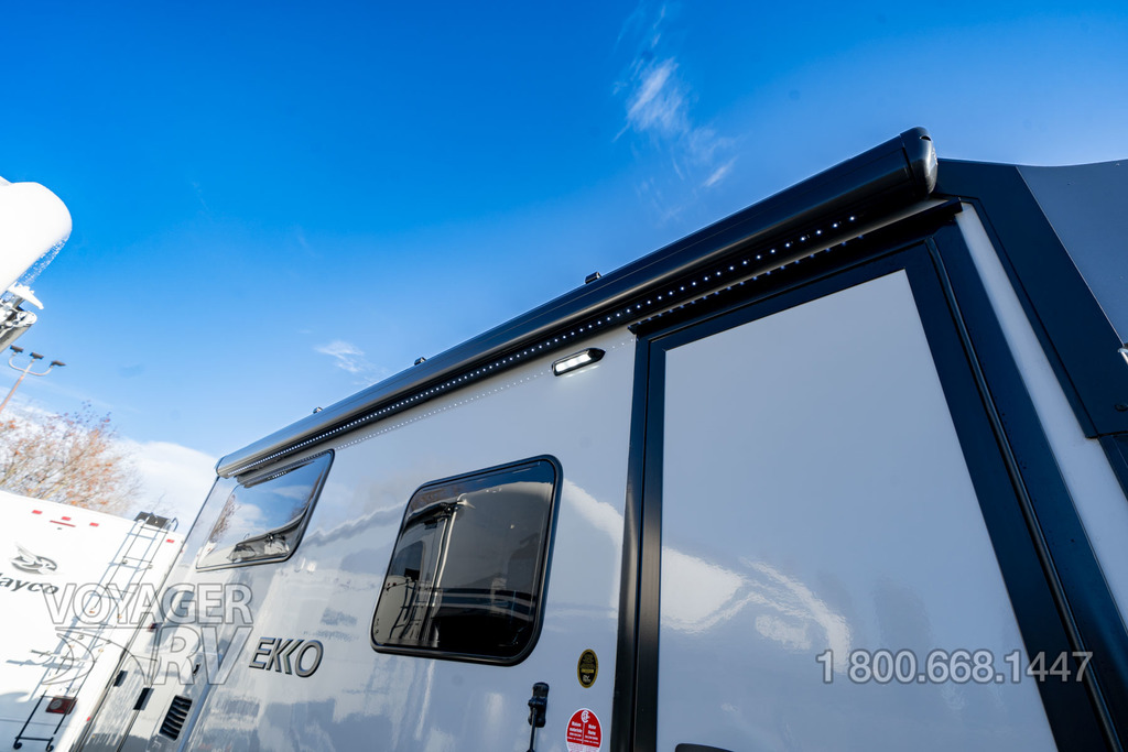 - Powered patio awning w/LED lighting and Bluetooth control